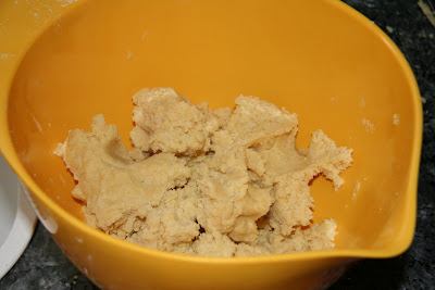 Lightly beat the egg yolks with the almond extract (if using) and quickly mix into the flour mixture. Keep mixing while dribbling in the water, only adding enough to form a cohesive and slightly sticky dough. Pour in at least the 2 tbsp, and see from there, just keep adding water until it sticks together well. Really well, and is not crumbly.