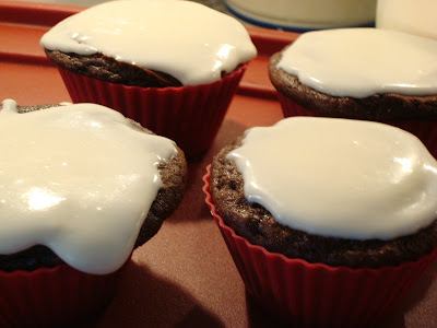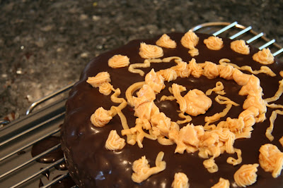 Heat the cream and corn syrup in a saucepan, on low, until it reached a gentle boil. Once to the gently boil, immediately and carefully pour over the chocolate. Leave it alone for one minute, then slowly stir and mix the chocolate and cream together until the chocolate is melted and incorporated into the cream. Carefully blend in vanilla mixture. If the surface seems oily, add ½ - 1 tsp hot water. The glaze will thicken, but should still be pourable. If it doesn’t thicken, refrigerate for about 5 minutes, but make sure it doesn’t get too cold!