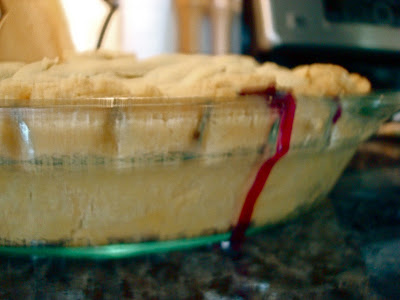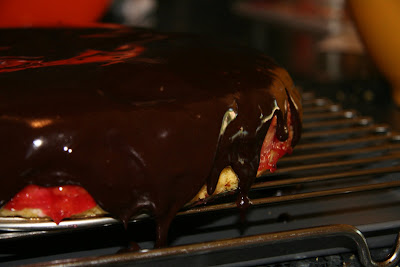 Ganache over Raspberry Preserves over Cake and it's layers.