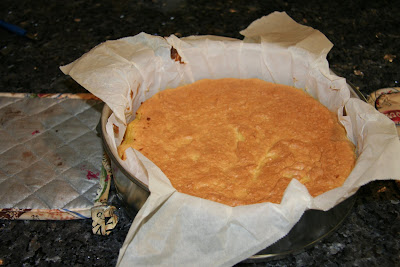 Remove from pan and with either the paddle or whisk attachment, beat the egg whites and sugar on med-high until its a thick, cool meringue - about 5-7 minutes. *Do not overbeat*. Set aside.