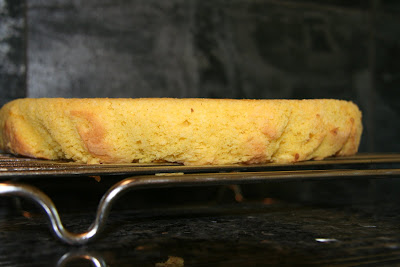 Tap the pan on the counter to remove air bubbles and bake in the preheated oven for 30-35 minutes. You’ll know the cake is done when it is springy to the touch and it separates itself from the side of the pan. Remove from oven and allow to stand for 5 minutes. Invert onto a cake rack sprayed with nonstick coating, removing the pan. Cool the cake completely.