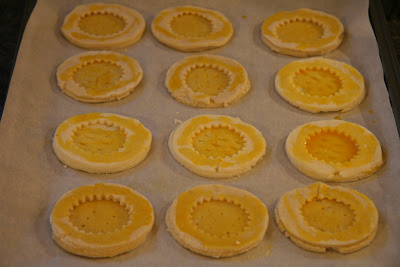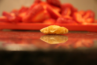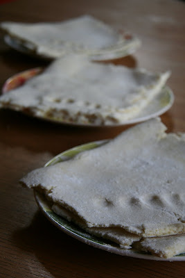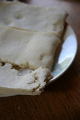 In case you were wondering, there wasn't much difference between the types I made. They all tasted good, and everyone prefered the one they ate that rose the most. The ones that seemed to do that were not rolled out too thin, but a little thicker (maybe 3mm, but I'm not sure). Next time, I'll not roll it out so thin, and see what happens. I used the provided challenge recipe, which you can find on Steph's site, or at the Daring Kitchen =D. The only major difference was that I made 1/5 of the recipe. So either make a small batch, or multiply the flours by 5.