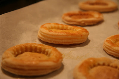 The September 2009 Daring Bakers' challenge was hosted by Steph of A Whisk and a Spoon. She chose the French treat, Vols-au-Vent based on the Puff Pastry recipe by Michel Richard from the cookbook Baking With Julia by Dorie Greenspan.
